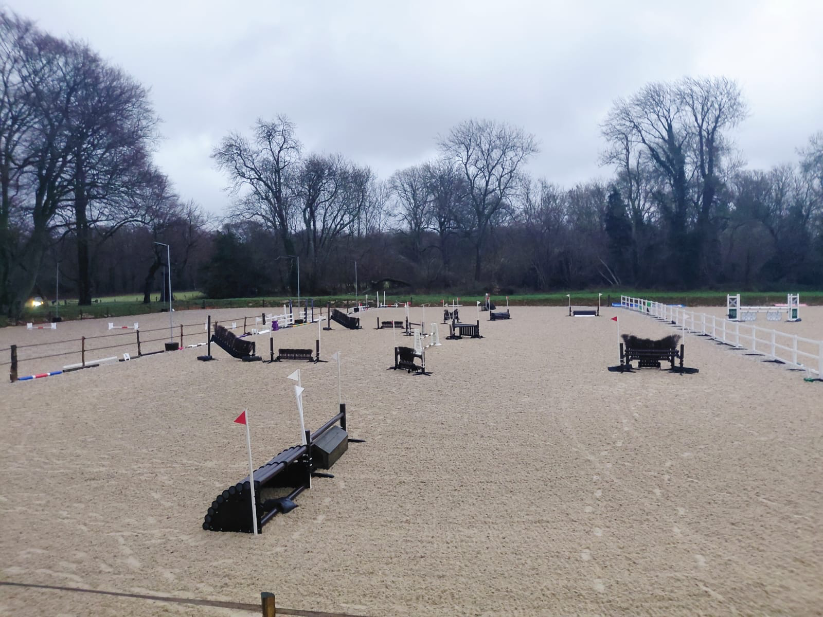 45 x 60m arena with a full set of Jump4Joy show jumps.